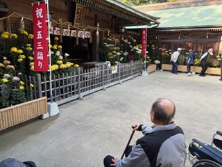 11月の外出プログラムとして中山神社で開催されている菊花展に行きました。小菊・中菊・大菊と色々な種類の菊の展示があり、ご利用者皆様たのしまれておりました。